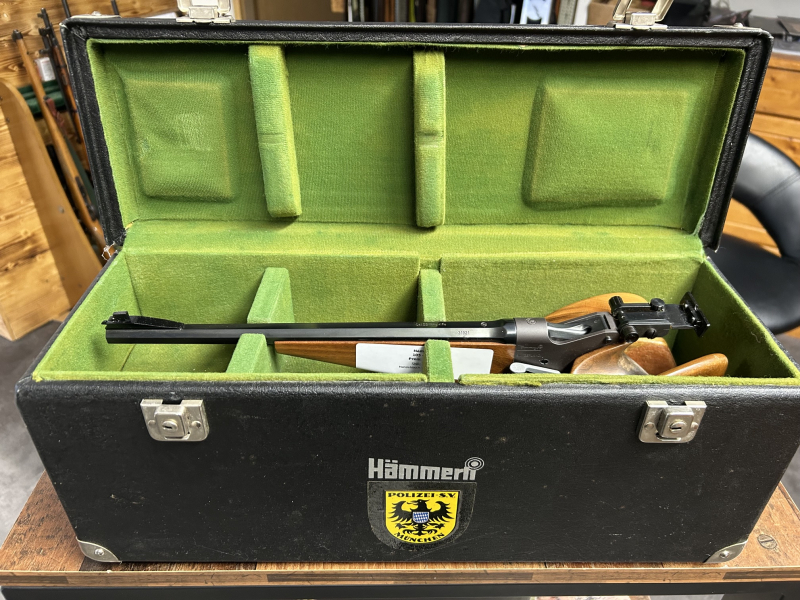 Freie Pistole von Hämmerli, Mod.106, Kal..22lr, im Originalkoffer, Umbausatz für Linkshand ist auch dabei, 2 Formgriffe, Lauf ist spiegelblank, Brünnierung top, Mechanik alles top, ----------Schnäppchen zum sofortigen loslegen---------