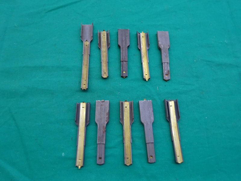 Konvolut von 10 Ladestreifen für das US M1 Carbine wie abgebildet. Kaliber .30 Carbine. Teleskopierbare Ladestreifen für 10 Patronen. Wird einfach übers Magazin geschoben und die Patronen reingedrückt. Funktioniert super und einfach. Phosphatiert und in sehr gutem Zustand! Selten angeboten.