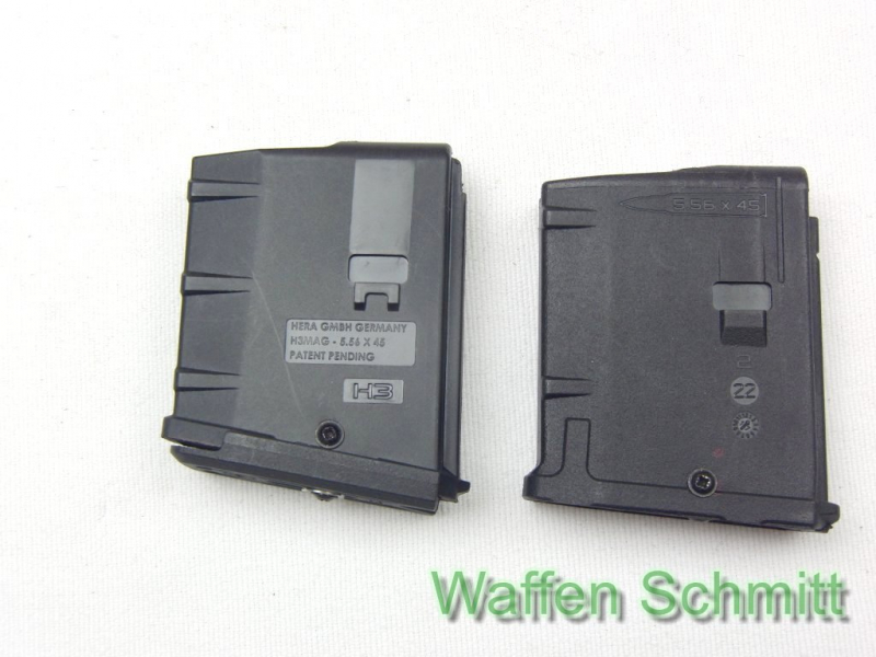 Sie bieten auf 2x Kunststoff-Magazine 5-Schuß Hera Arms im Kaliber .223Rem. passend für AR15 Systeme für das Kaliber .223Rem. Einwandfreie Funktion. Sehr guter Zustand!!!