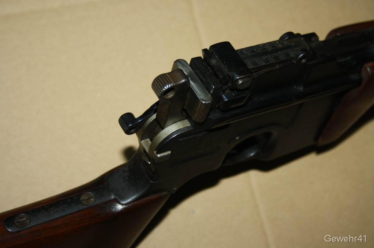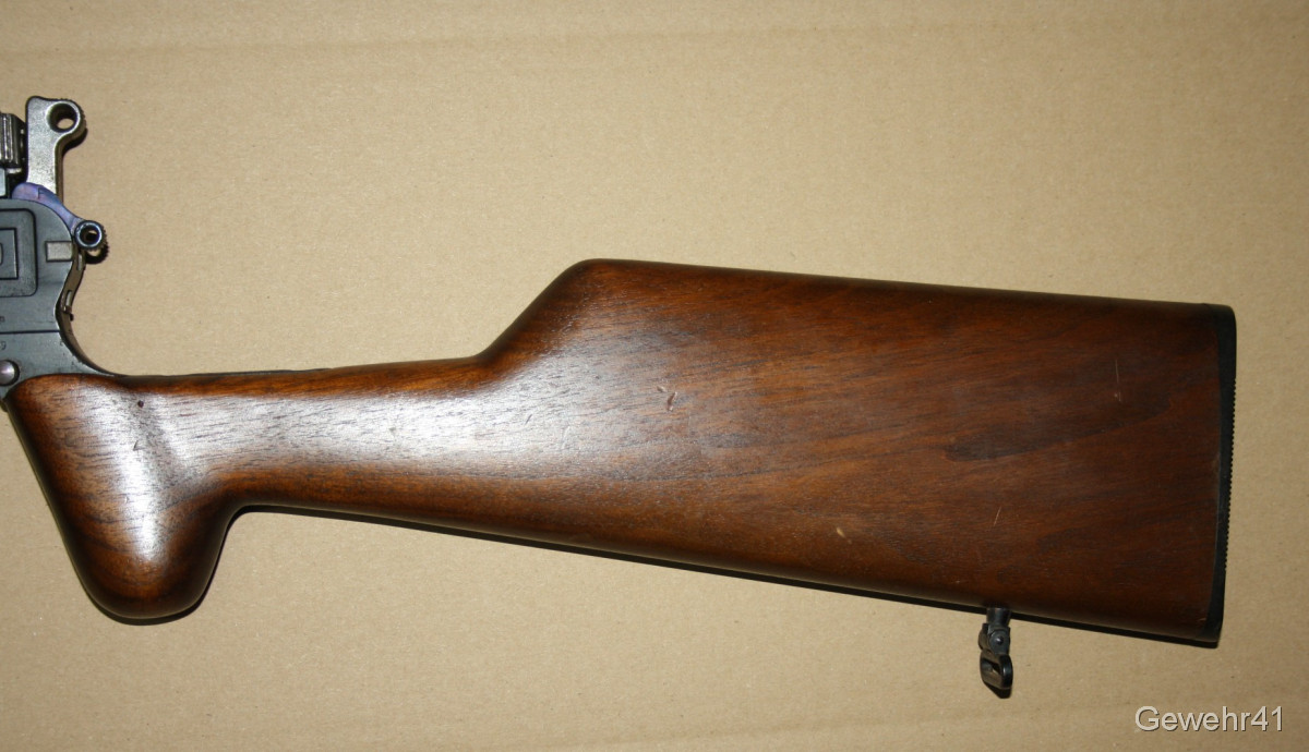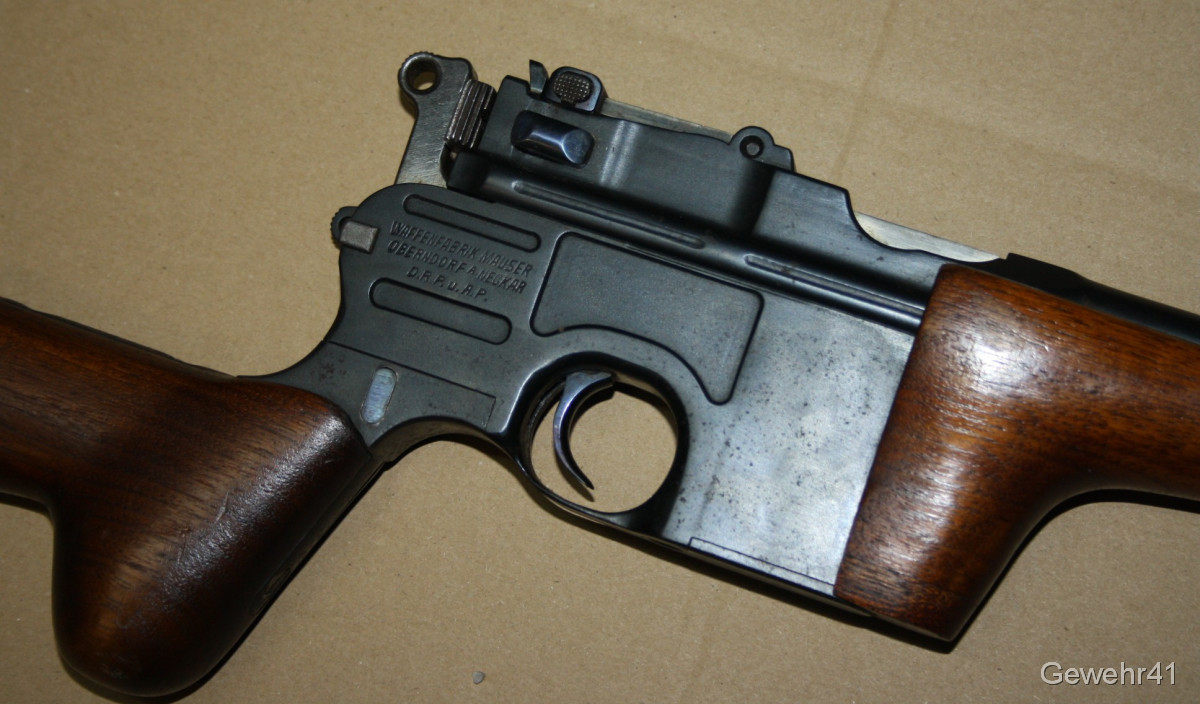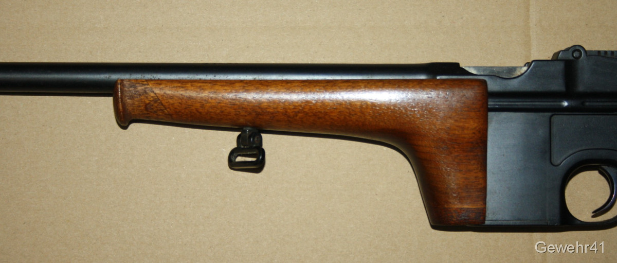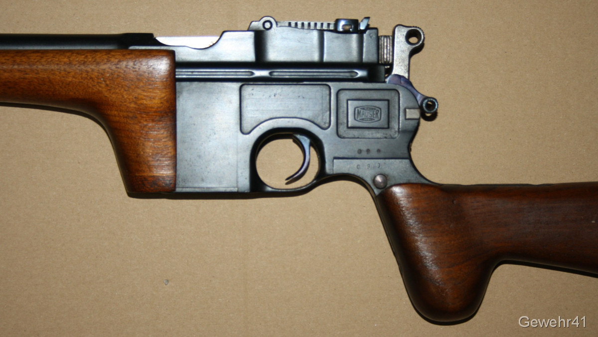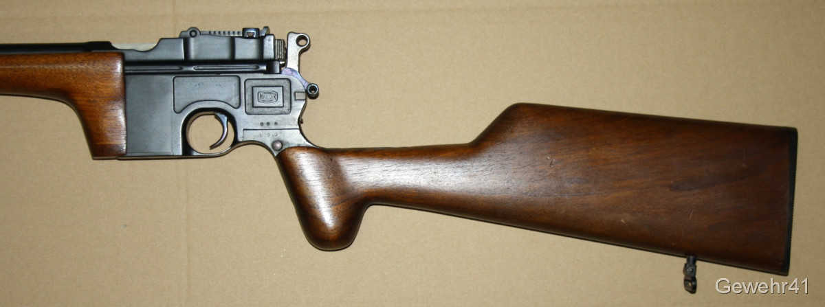 Sie bieten auf diesen sog. Jagd-Karabiner Mauser C96 im Kal. 7,63mm Mauser. Die halbautom. Büchse ist im schönen Zustand mit nur leichten Gebrauchsspuren. Lauf und Funktion einwandfrei. Mit dezentem Neu-Beschuss.