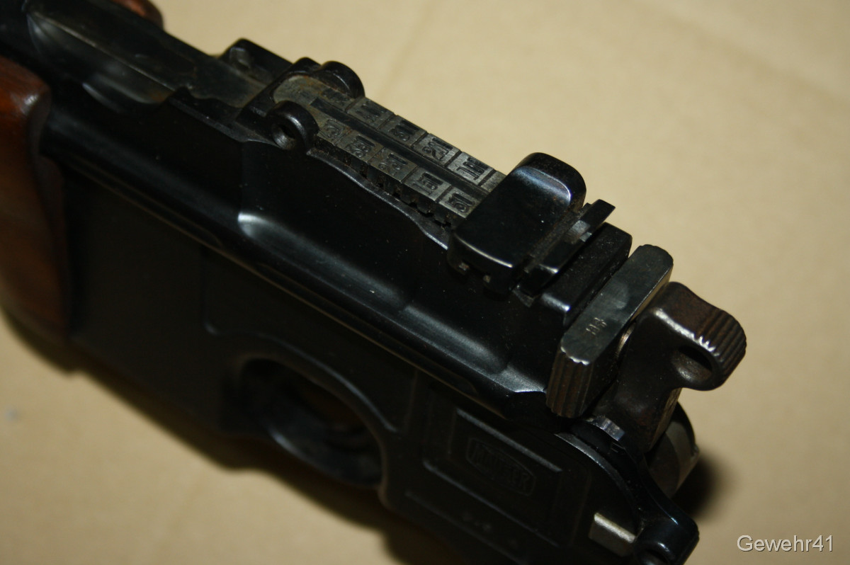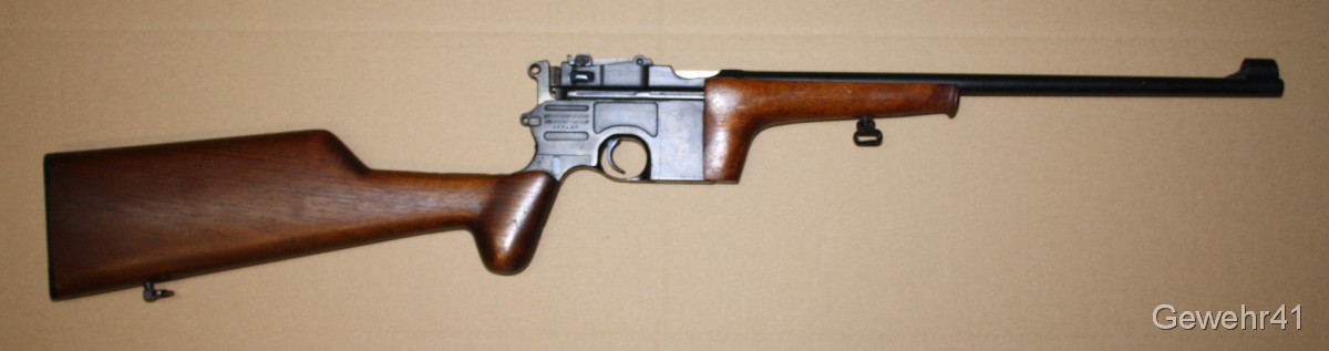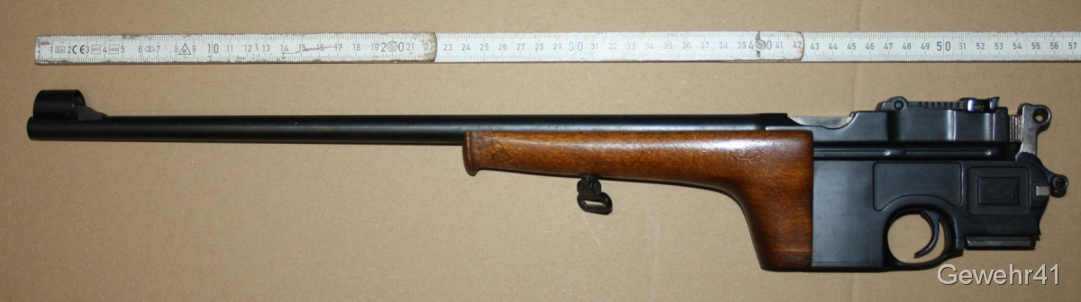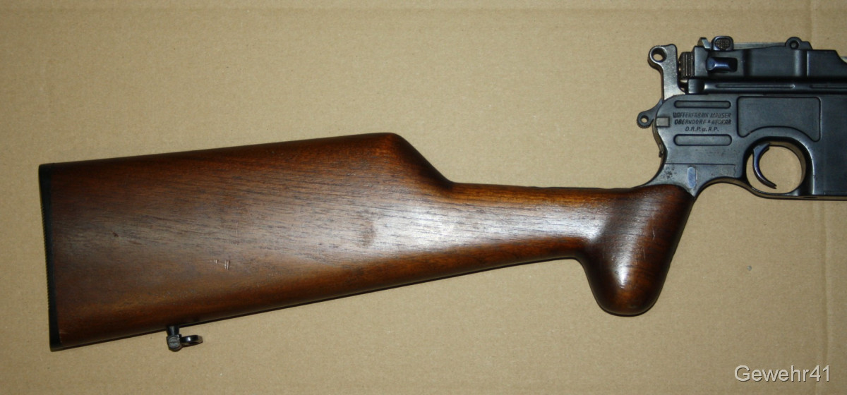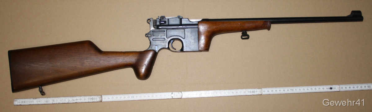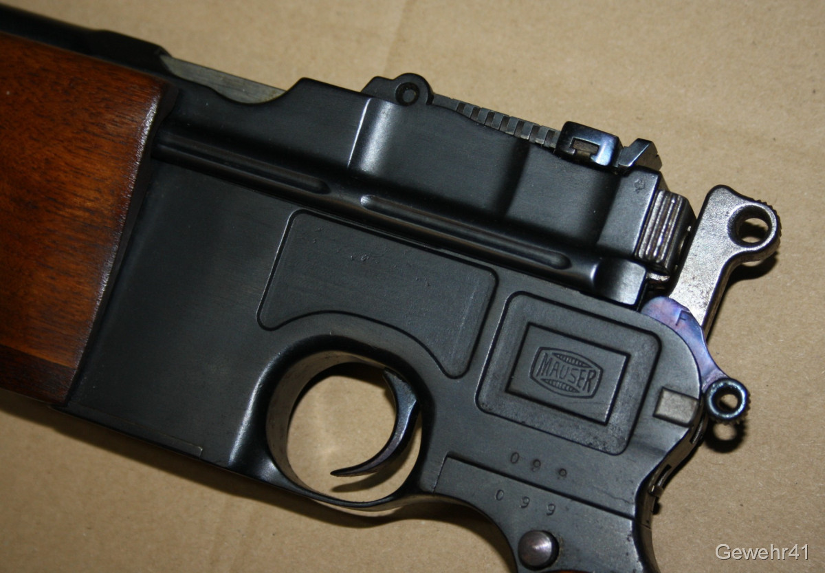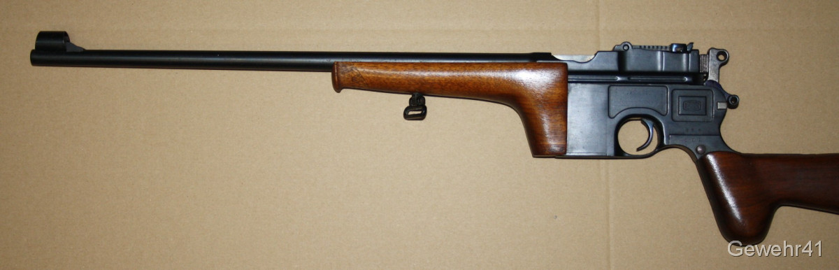 Sie bieten auf diesen sog. Jagd-Karabiner Mauser C96 im Kal. 7,63mm Mauser. Die halbautom. Büchse ist im schönen Zustand mit nur leichten Gebrauchsspuren. Lauf und Funktion einwandfrei. Mit dezentem Neu-Beschuss.