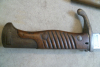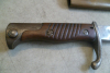 Bajonett wie abgebildet, Griffschalen sehr gut, Klinge ebenfalls sehr gut, Gefäß patiniert und Drücker leichtgängig.