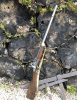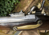 Sehr seltener Perkussions-Artilleriekarabiner, Modell 1829, Kaliber 17,6 mm, Länge 98cm, Nussbaumschaft. Unglaublicher ORIGINALZUSTAND! Und das Beste: Sogar noch mit dem Originalriemen von 1854 mit Brandschrift des Artillerieregiments Nr.2. ( diese Regimentsnummer ist auch auf der Messingschaftkappe eingeschlagen) Das Leder des Riemen ist zwar recht steif, aber nicht rissig oder spröde. Die Feder des Hahns ist superstramm, eine wahre Freude den Hahn zu spannen. Abzug löst sauber aus. Alle drei Stellungen des Hahns noch vorhanden. Der Lauf mit seinen 4 breiten, deutlich sichtbaren Zügen ist rostfrei und spiegelt beim Reinleuchten! Keine Ahnung, wo dieses Stück so unbeschadet die fast 200 Jahre gelagert war. Die Waffe wurde 1855 vom Steinschloss auf Perkussion adaptiert. Überall finden sich Nummern, Abnahmestempel und Zahlen. Die Gewehrnummer 1103 findet sich auch im Schaft wieder. 8.Decembre 1855 steht etwas schwer lesbar auf dem runden Schaftstempel.