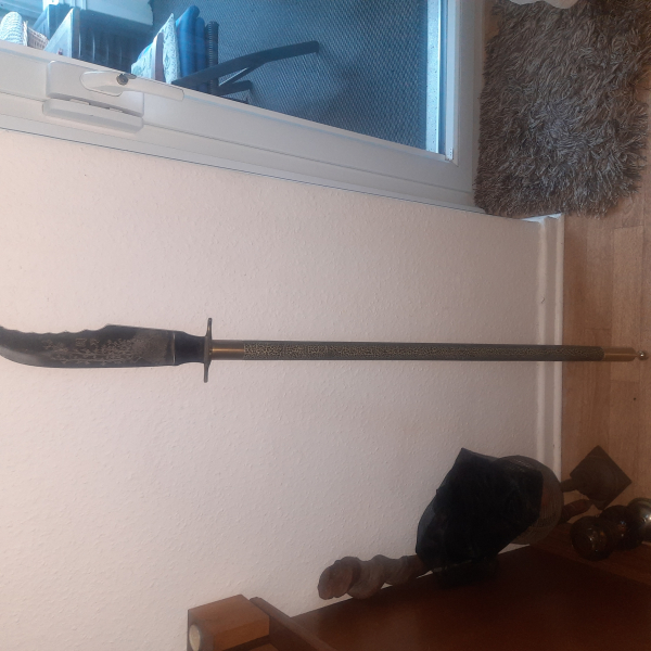 Chinesisches Guan dao Stangenschwert mit Gravur