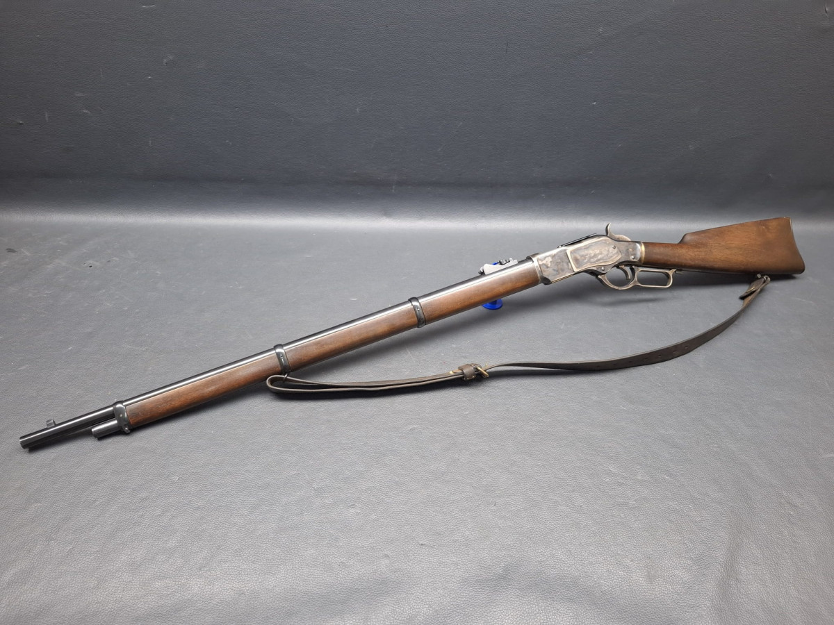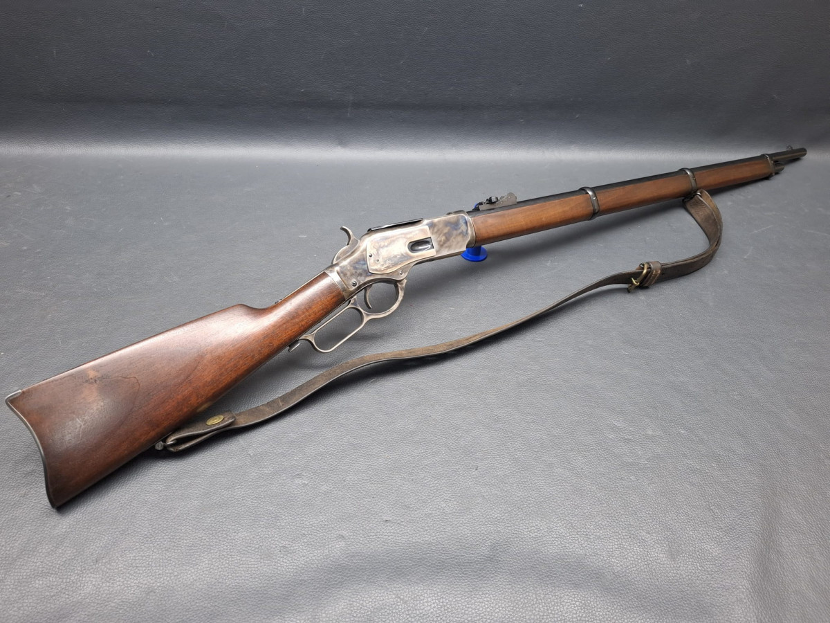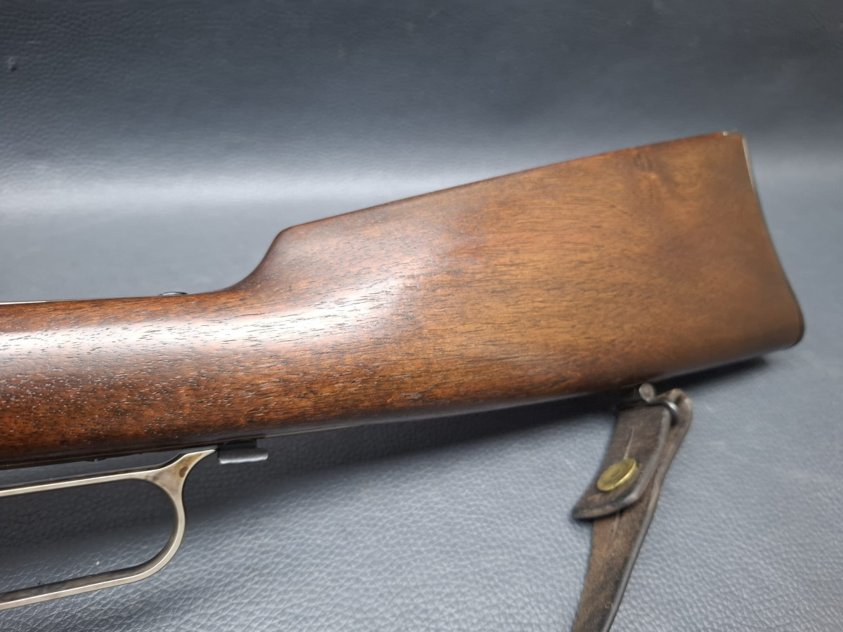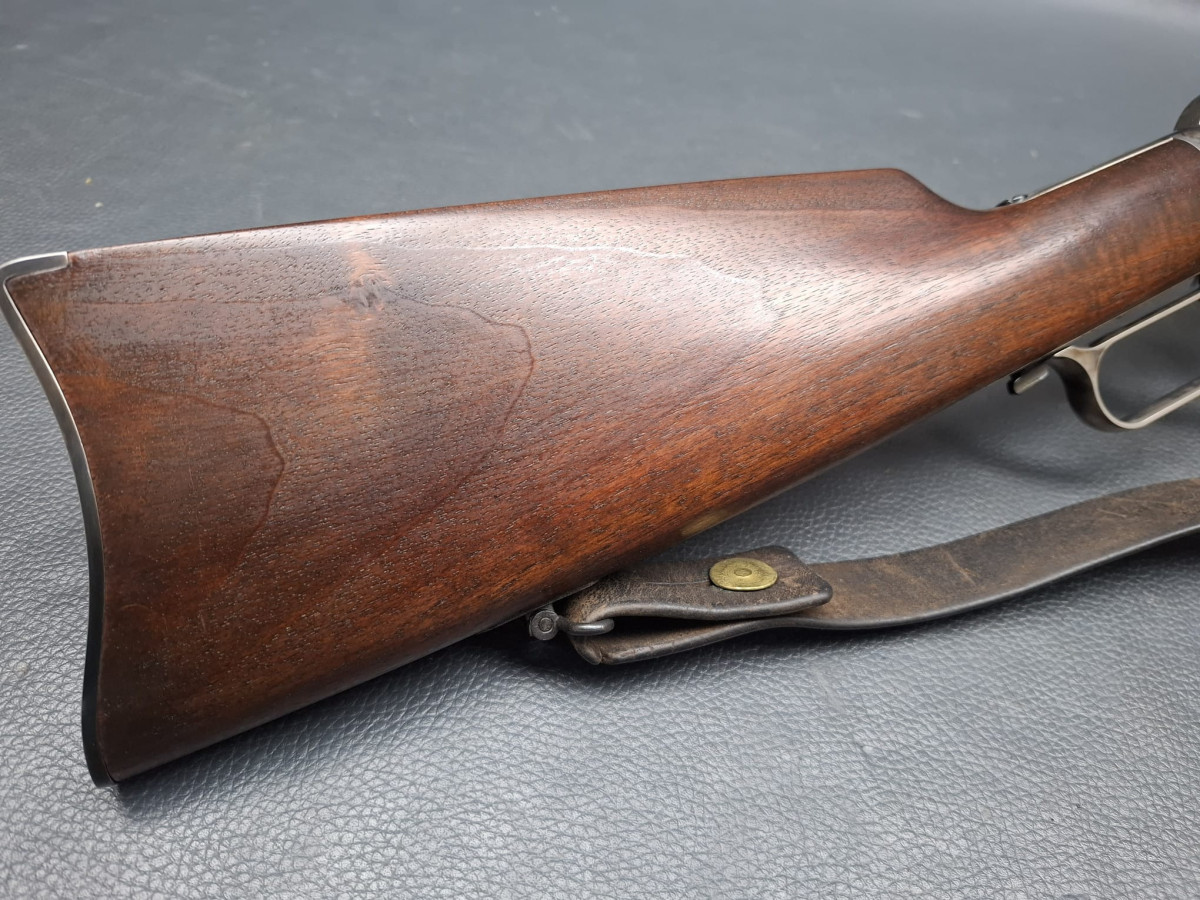 Lauf tiefschwarz brüniert,verstellbares Klapp-Visier, Stahl-Systemkasten buntgehärtet, sehr guter Direktabzug, außenliegender Hahn, Magazinrohr unter dem Lauf.