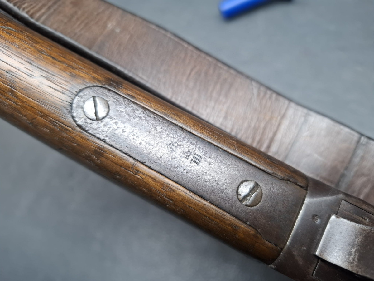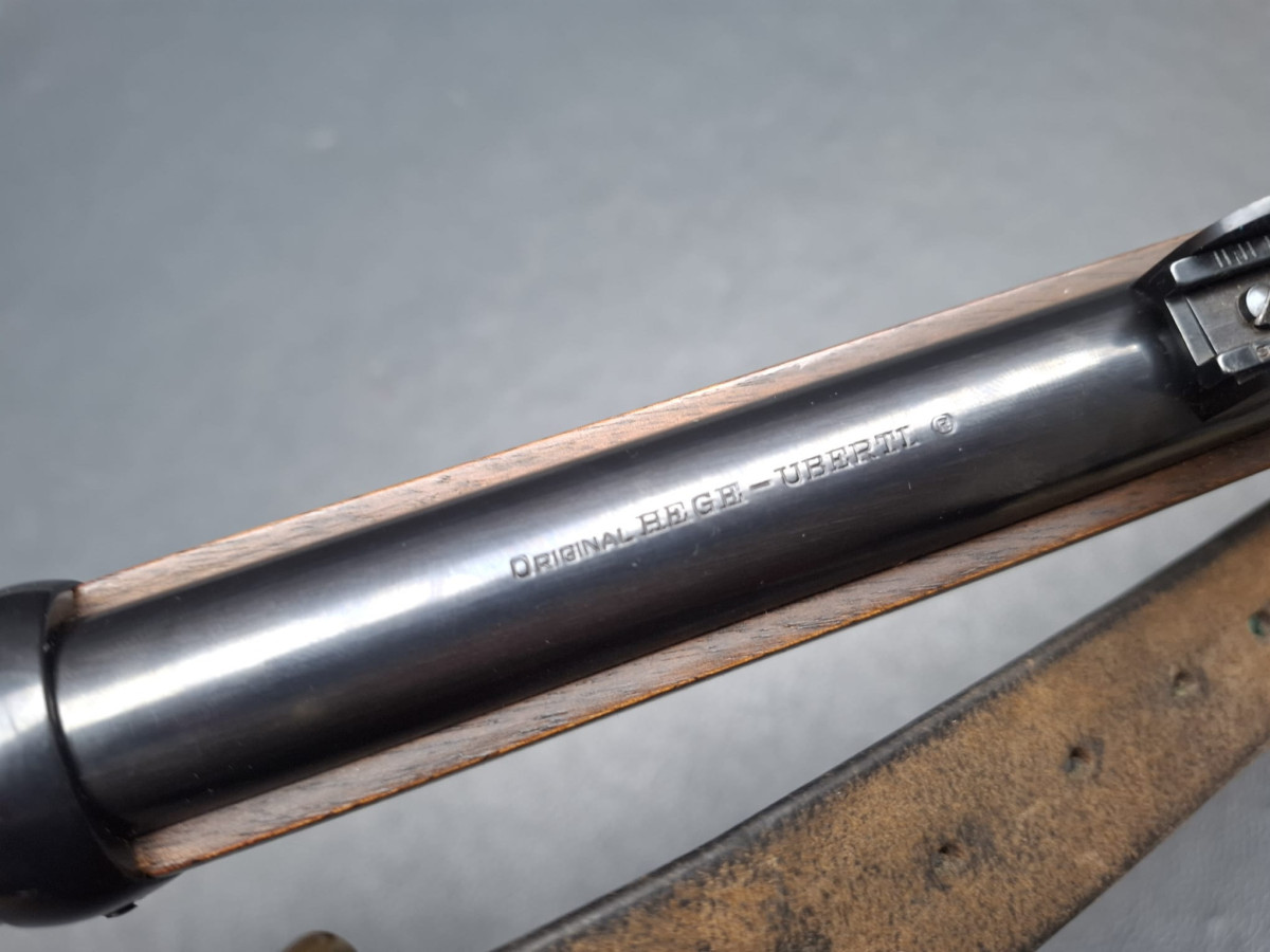 Nußbaumschaft ohne Backe, Riemenbügel und Lederriemen. Lauf excellent, Gebrauchtwaffe sehr gut oder neuwertig