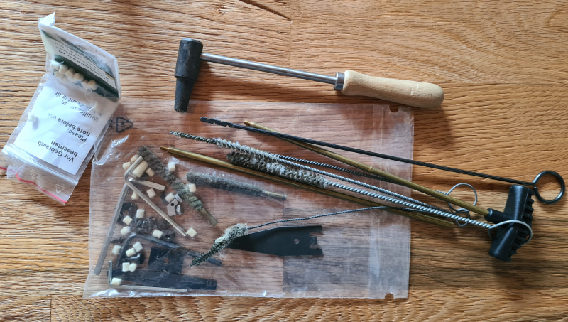 Ich biete das abgebildete Reinigungszubehör plus den Punzierhammer an. Einige Dinge sind wohl gebraucht, können aber noch einige Läufe durchwischen. Dies ist ein Privatverkauf der ohne Gewährleistung und ohne Rücknahme erfolgt. Ich versende mit Hermes und teile die Sendungsnummer mit.
