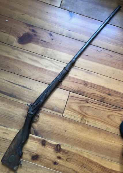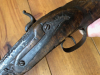 Restaurierungsbedürftiges Miquelet Gewehr, aptiert zum Perkussion Schloss, Gesamtlänge 127cm, Lauflänge 87 ohne Schwanzschraube, Schloss funktioniert gut, Lauf mit Silbereinlagen, Messingkorn, Schaft unter dem Lauf mit alten Reparatur Arbeiten, Ladestock fehlt, ansonsten tatsächlich komplett, restaurieren lohnt sich.