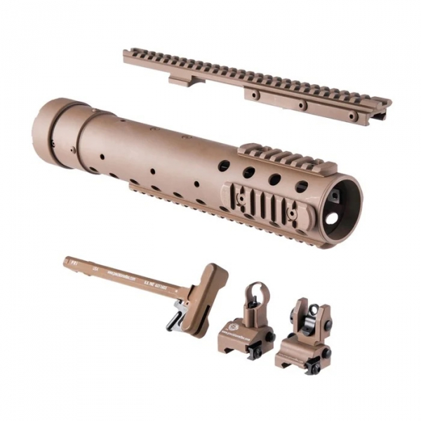 Angeboten wird ein Set von Precision Reflex in der Farbe FDE. Es handelt sich um ein MK12 Mod 0 Handschutz mit Zubehör. Damit lässt es sich einen echten SPR Clone zu bauen. Das Set ist neu und originalverpackt.