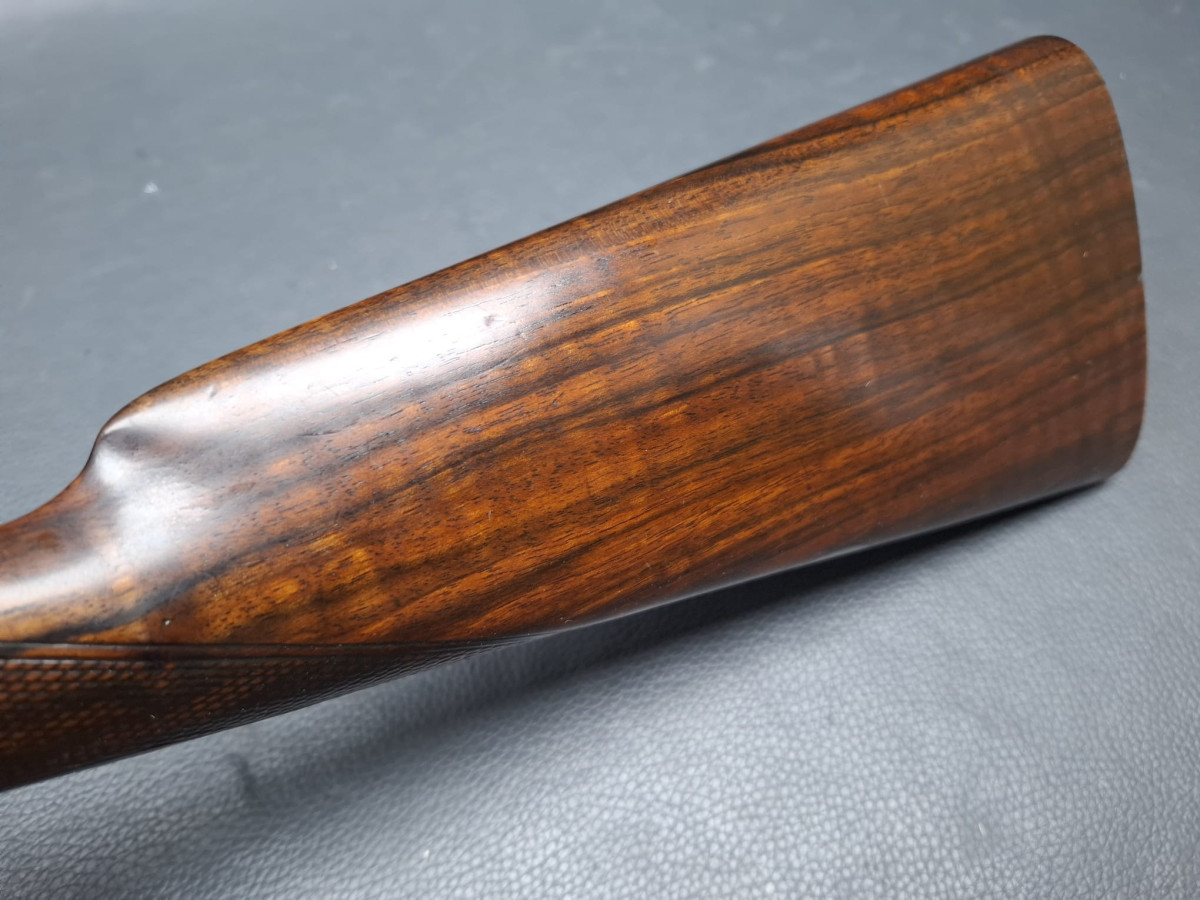 dunkler Nussbaumschaft mit Tränen und intensiver Maßerung