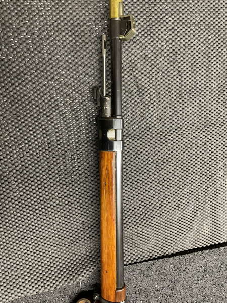 Das Gewehr ist in einem hervorragenden fast neuwertigen Zustand. Brünierung vollständig erhalten, Schaft vereinzelt ganz leichte Dellen. Komplett nummerngleich (Schaft, System, Mündungsschoner und Putzstock). Orginalzustand ohne Überarbeitung. Mitgeliefert wird der orginal Gewehrriemen und ein passendes Bayonett (Bayonett leider nicht nummerngleich zum Gewehr).