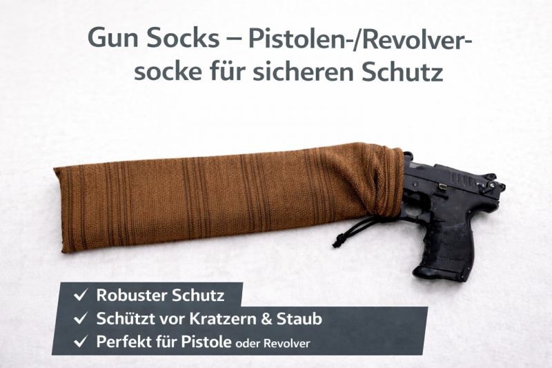 Die Socke schützt eure Waffe zuverlässig vor Kratzern, Staub und leichten Feuchtigkeitseinflüssen - ideal für den Waffenschrank, den Transport oder einfach als zusätzlichen Oberflächenschutz. Weiches Material, leicht dehnbar und platzsparend.