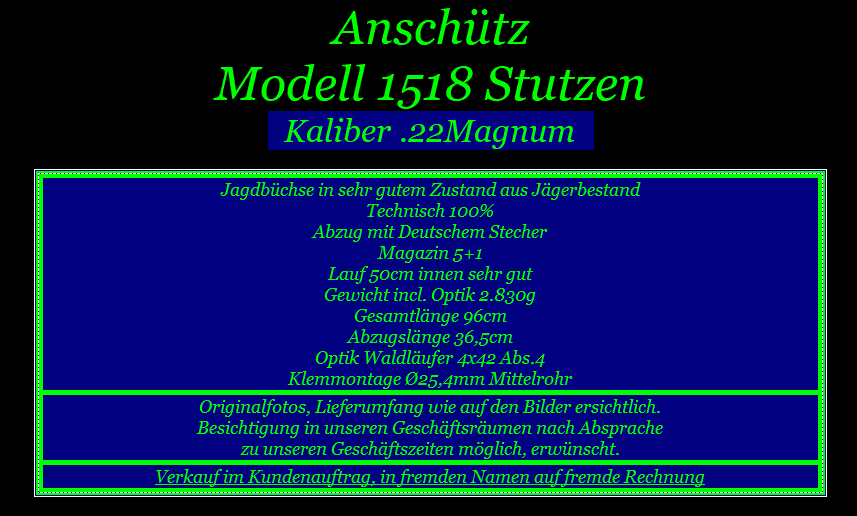 Anschütz Modell 1518 Stutzen Kaliber .22Magnum