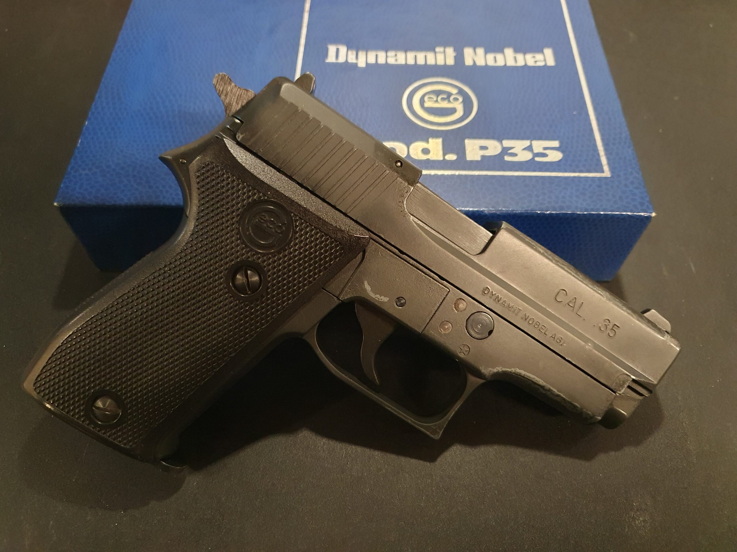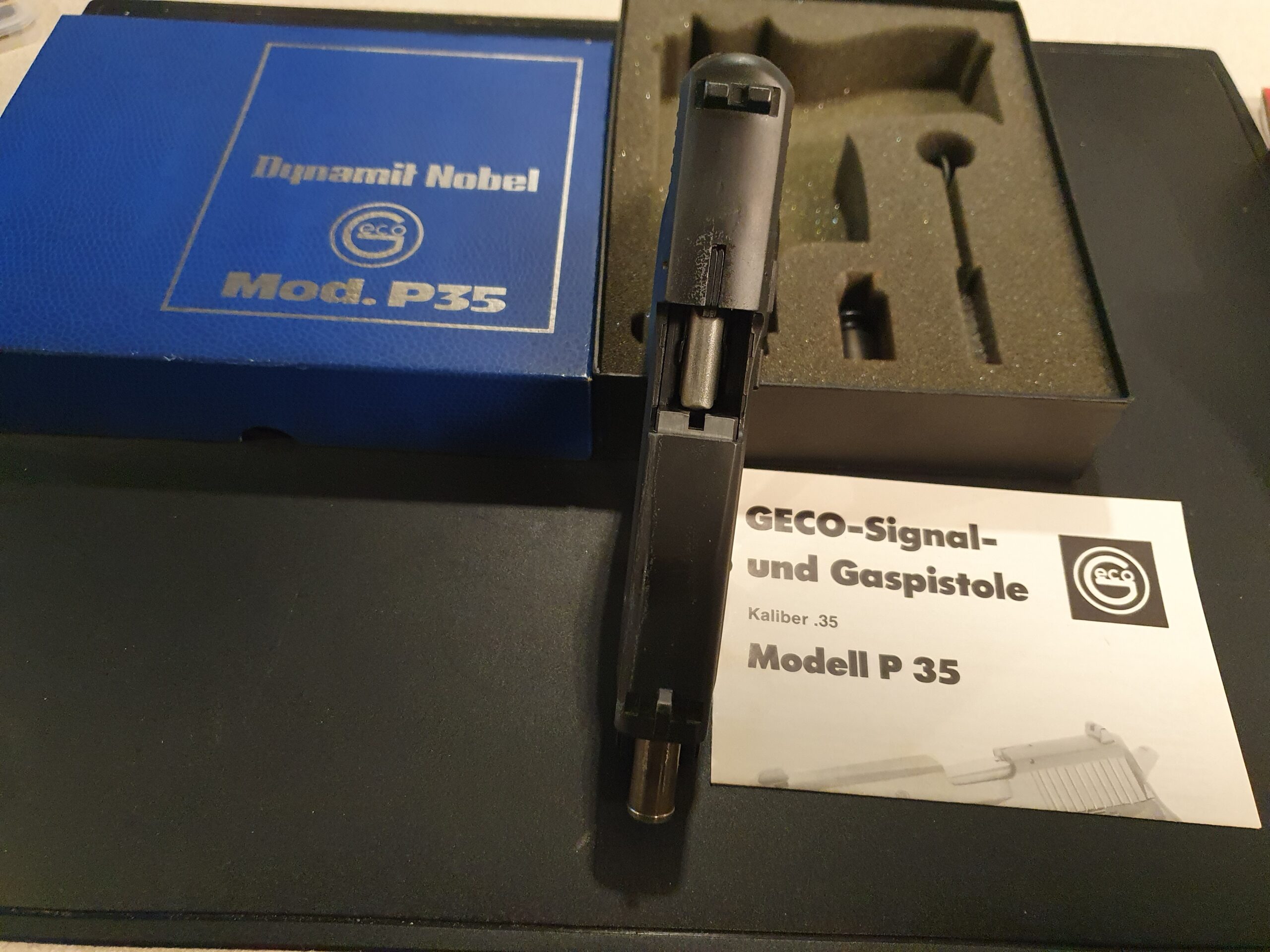 GECO P35 Cal 35 Beschuss 1991 mit Original Pappschachtel, Abschussbecher Beschreibung sowie der Originale Kaufbeleg von 1991 !!