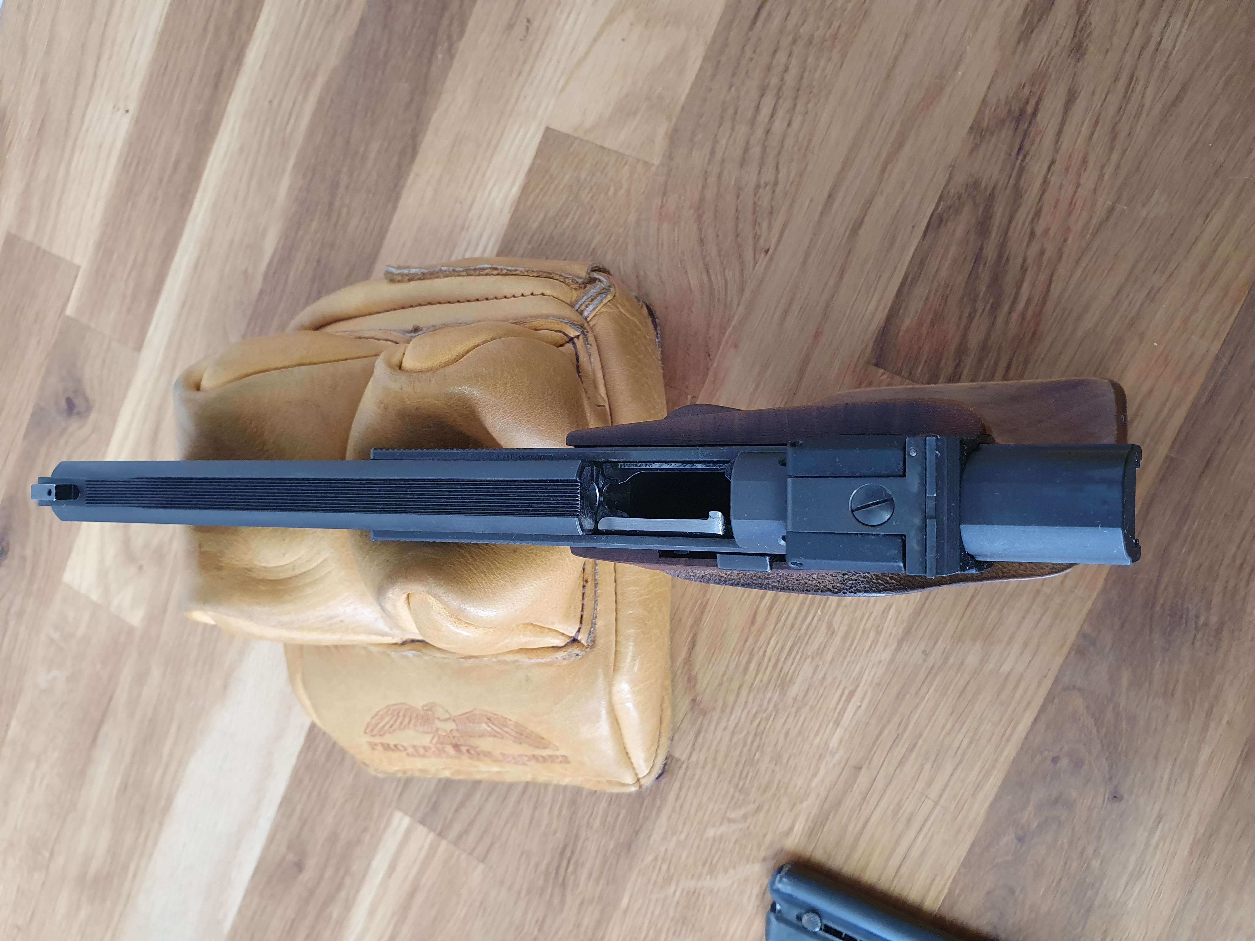 Hämmerli Match Pistole Mod: International, Lenzburg Switzerland, cal .22 Long Rifle. Der Lauf ist in super Zustand es handelt sich insgesamt um eine sehr gepflegte Waffe mit abnehmbarem Laufgewicht. Abzug-Gewicht, Visier sowie Holzgriff sind verstellbar. KK-Matchpistole Kaliber .22LR, 22 LfB, für Wettkampf und Training. Ohne weiteres Zubehör. Aus Nachlass. Ich verkaufe im Auftrag - Privatverkauf! Keine Rücknahme, keine Garantie! Die Waffe hat dem Alter entsprechende Gebrauchsspuren. Artikelzustand gebraucht: Da ich den aktuellen Zustand der Ware nicht herbeigeführt habe, versuche ich evtl. Mängel / Kratzer und Macken im Text und auf den Bildern aufzuzeigen... Mir ist egal aus welchem Land Sie bieten, ich versende NUR!!! an eine deutsche Versandadresse! EWB pflichtiger Artikel: Versand 58,00€ durch einen Waffenkurier, versichert mit persönlicher Übergabe. Für den Export kontaktieren Sie z.B. die Firma Waffen Bock, in Pirmasens.