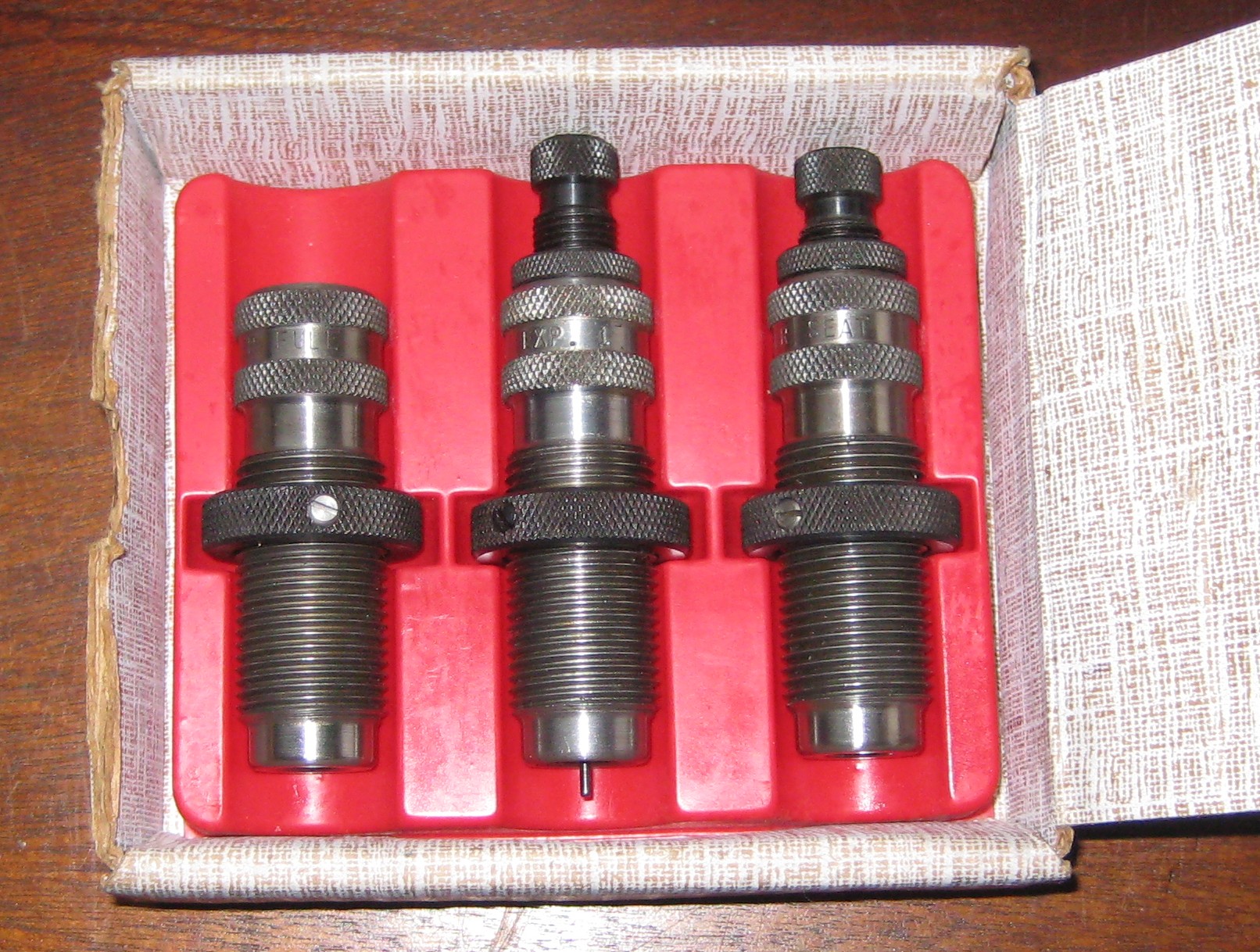 Verkauft wird ein älterer 3-teiliger Redding Kurzwaffen-Matrizensatz,