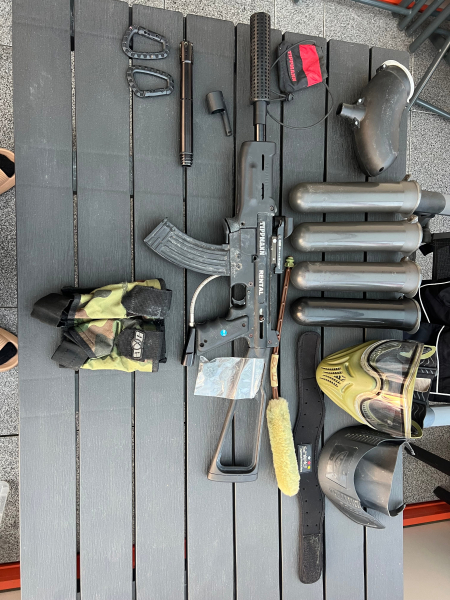 Das Set liegt seit 2020 eingepackt im Keller und wird aufgrund von Hobbyaufgabe verkauft. Beim letzten Spielen hat der Markierer problemlos funktioniert. Da er aber einige Zeit im Keller lag und ich keine Flasche habe um die Funktionalität vollständig zu überprüfen wird der Markierer als "ungeprüft" verkauft da ich nicht sicher sagen kann ob er funktioniert. Beim Bodykit kann die Schulterstütze abgebaut werden und durch einen Blindstopfen ersetzt werden. Das Visier hatte einige wenige Male einen Wackelkontakt, daher verkaufe ich es als reines Dekoelement! Die Schalldämpferoptik habe ich auf den langen Lauf aufsetzen lassen. Sie ist etwas von der Halterung gerutscht (siehe Bild). Entweder drückt man sie wieder drauf oder nimmt sie komplett ab.