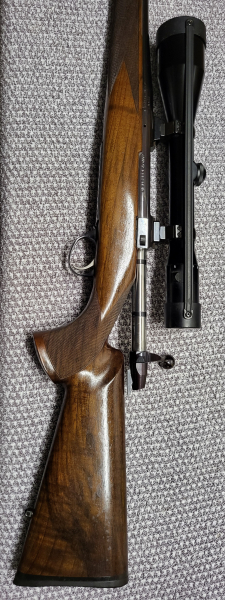 Sie bieten auf eine Custom- und Präzisionsbüchse im rasanten Kal. .25/06 von dem leider viel zu früh verstorbenen Büchsenmacher und Benchrester Martin Menke aus Heiden im legendären System AV von Sako. Heute eine absolute Rarität. Lauflänge 62cm, Länge Abzug bis Schaftende 34,5cm. Zielfernrohr ist ein Zeiss Diavari ZA 2,5-10×52 T*, Abs. 4 auf Festmontage. Abzug trocken (bricht wie Glas)! Privatverkauf, daher keine Garantie oder Rücknahme. Viel Spass beim Bieten!