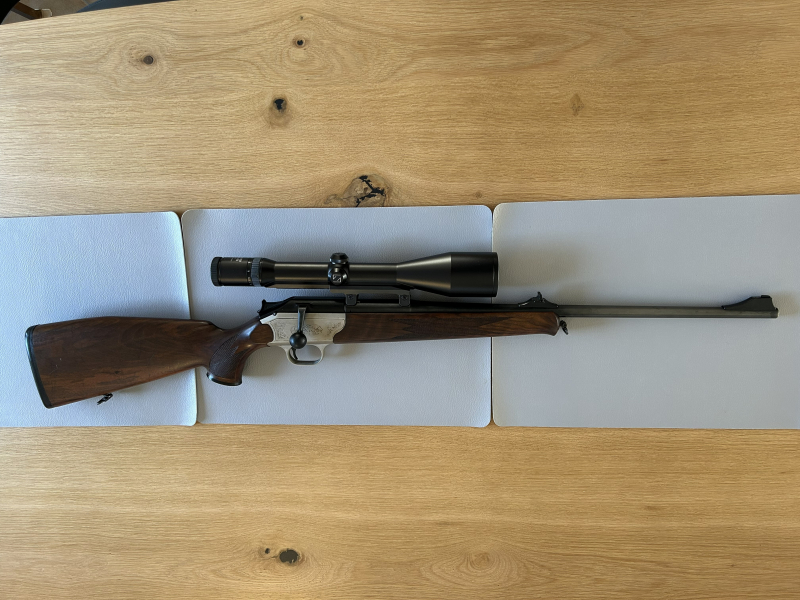 Zum Verkauf angeboten wird die abgebildete Repetierbüchse Blaser R93 im Kaliber .30-06. Auf der Waffe ist ein Zeiss Diavari-ZM 3-12x56mit Abs. 1 auf einer Sattelmontage verbaut und Bestandteil des Angebots.