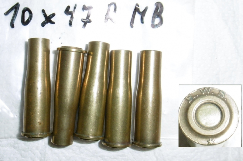 angeboten werden 5 Schützenhülsen 10x47 R MB, Dixon MB82, ( R W S * ) zeitgenössisch neu gezündert und im Tumbler gereinigt.