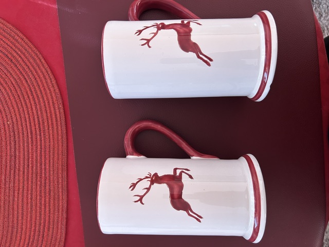 Auf dem Bierkrügen sind Hirsche abgebildet.Sie sind neu und unbenutzt!