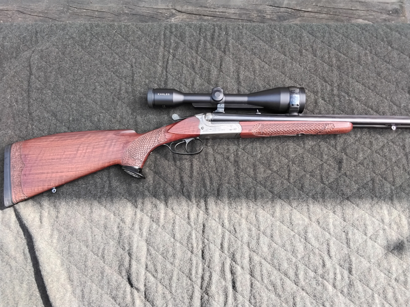 Büchsflinte Merkel Suhl Model 240. Kaliber 8x57IRS und 20/76 Schrot. Die Waffe bfindet sich im sehr guten bis neuwertigem Zustand. Zielfernrohr Kahles Helia CB 8x50. Lauflänge 60 cm, Schaftlänge 36,5 cm. Letzter mir bekannter Neupreis ohne ZF waren 7800 Euro!!!