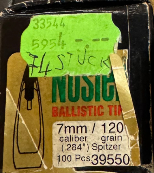 zum Verkauf stehen aus Wiederlader-Nachlass 74 x Geschosse Nosler Ballistic Tip .284, 7mm - 120 grain schwer.
