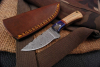 Die ebenfalls handgefertigte Lederscheide besteht aus hochwertigem Rindleder und wurde dem Messer genau angepasst.