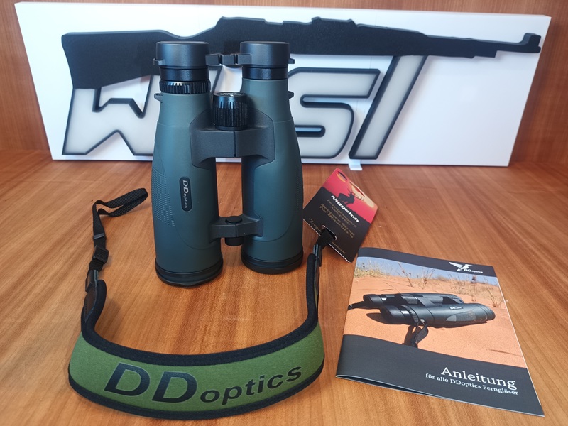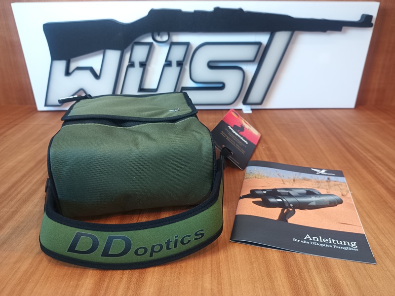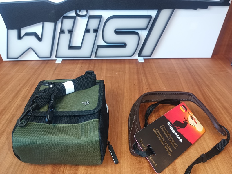 wird mit Fernglastasche, Niggeloh-Trageriemen und Schutzkappen für Objektiv sowie Okular ausgeliefert