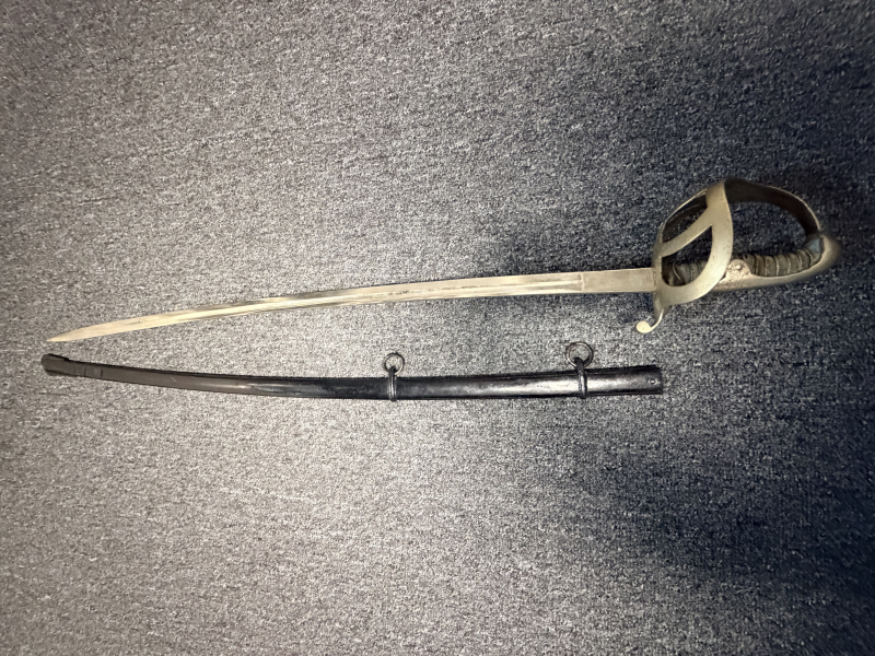 Schöner Preußischer M52/79 Extrasäbel nichts wackelt oder ist verbogen .Alles in recht guten Zustand . Griffwicklung ist nicht mehr so gut und Scheide wurde wie so oft neu lackiert . Fingerschlaufe vorhanden und Mundblech fehlt