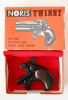 Verkaufe ein Griffstück vom Noris Twinny Derringer. Das Griffstück ist vom Profi Cerakote beschichtet in Schwarz. Es kommt mit Holzgriffschalen und in der Original Schachtel.