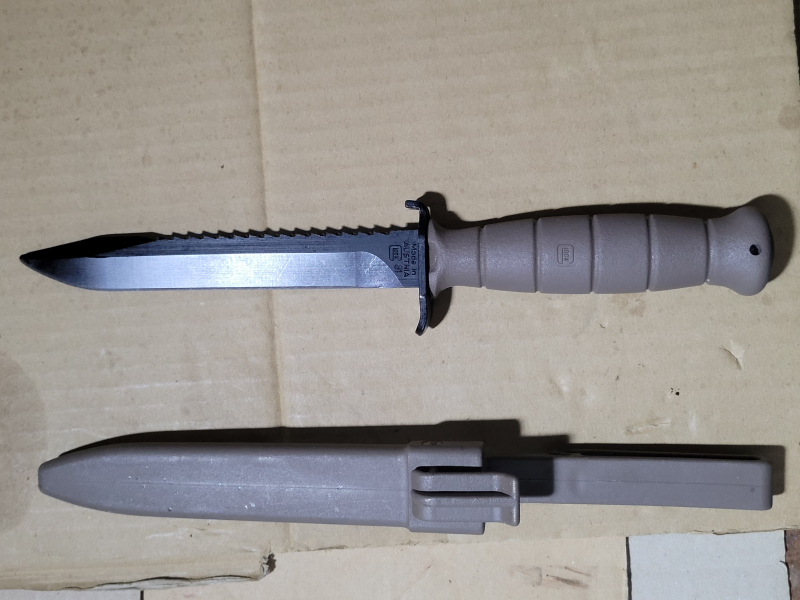 Feldmesser Glock 81 (FM81) zu verkaufen, Federstahl mit Sägezahnung, Clip-Verschluss aus Polymer,