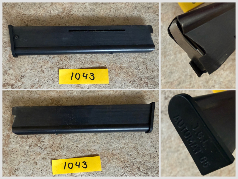 Das originale 15 Schuss Magazin für den JGL Landmann Automat 65 befindet sich in einem sehr guten und funktionsfähigen Zustand, siehe Foto. Es handelt sich hier um eine frühe Ausführung, beschriftet mit “J.G.L. Automat 65”.