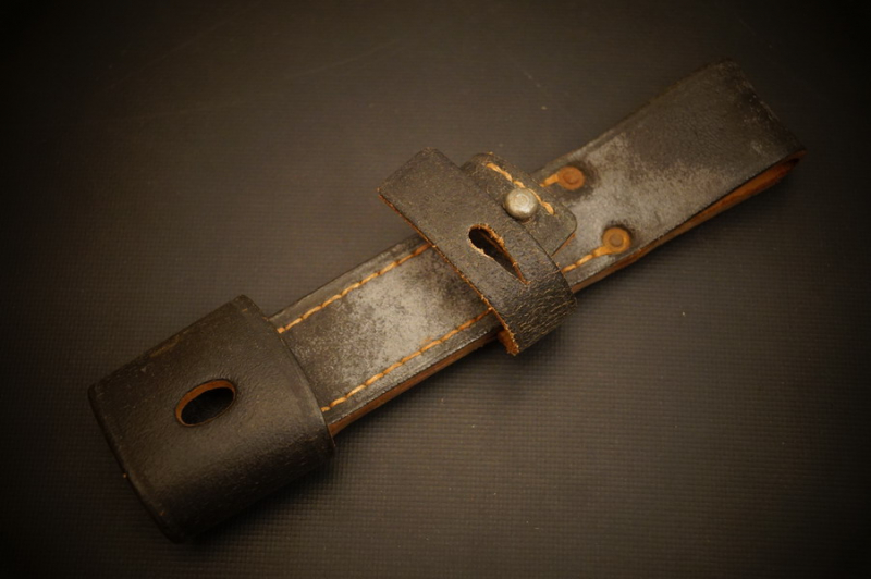 Fundzustand. Leder mit Stahlnieten und verzinktem Haltebolzen.