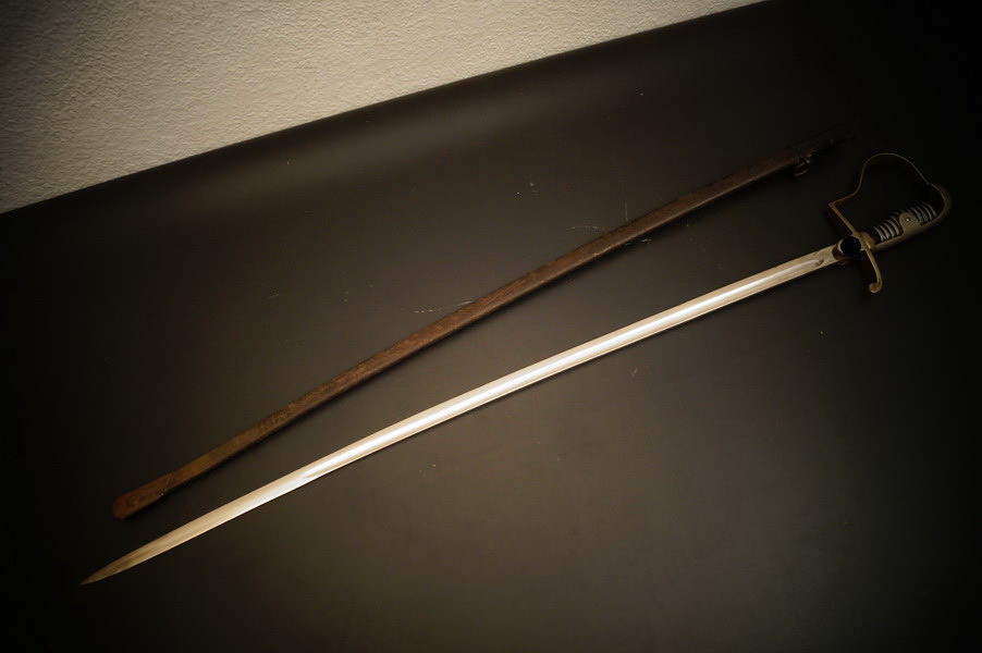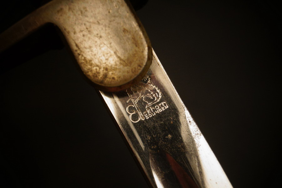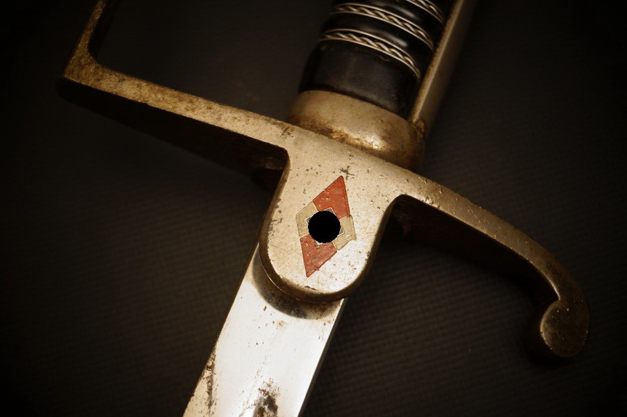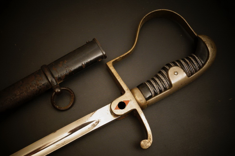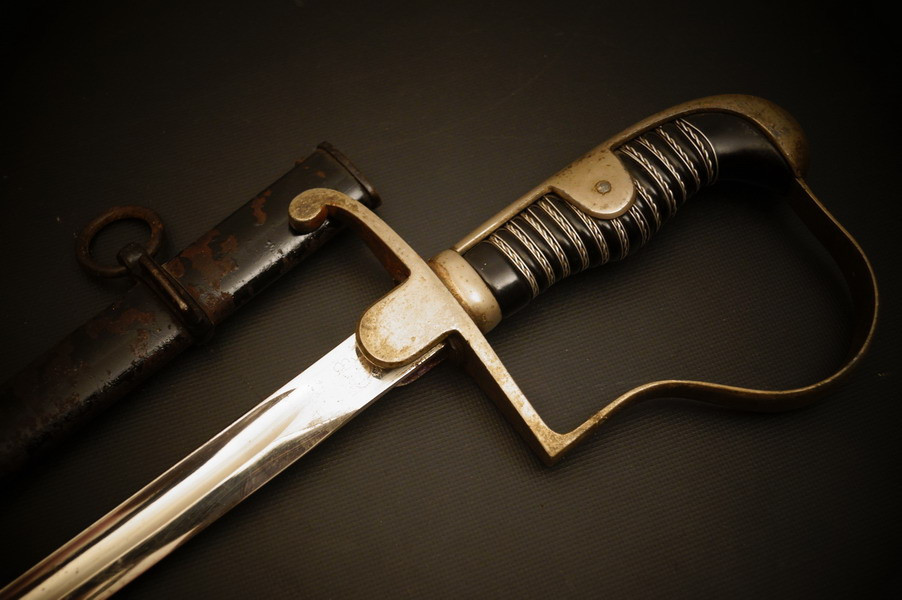 Fundzustand. Stahlscheide und vernickelte Stahlklinge. Raute im Stahlgefäß, stark vertieft. Selten !