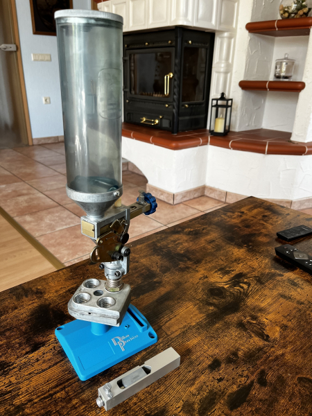 DILLON Autom. Pulverfüller für RL550, XL650, XL750, XL1050 mit unbenutztem großen Schieber und benutzten kleinen Schieber. Der eingebaute kleine Schieber funktioniert ohne Abweichung und befindet sich in techn. einwandfreiem Zustand.