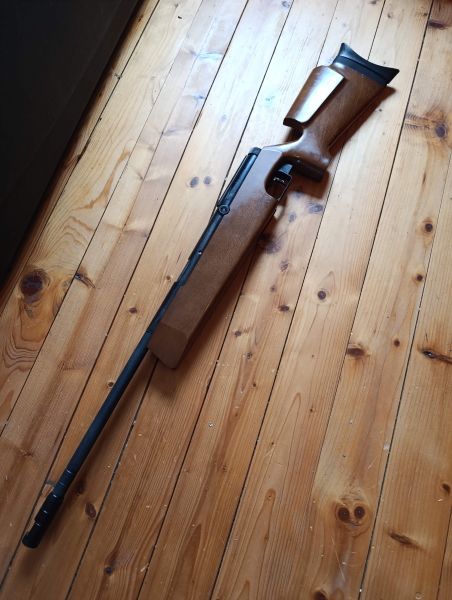 Zum Sofortkauf kommt ein Luftgewehr Diana 75 T01, Kal.4,5mm, F im Fünfeck, verstellbare Schaftkappe, ohne Visierung. Rechtsschaft mit Riss auf beiden Seiten im Griffbereich, siehe Bilder. Riss geht nicht komplett um den Griff. Riss wurde von der Schaftinnenseite aus mit 2 Holzschrauben stabilisiert und ist fest, restlicher Schaft in gutem Zustand. System mit starken Gebrauchsspuren, Vorderes Laufgewicht hat vorne ein paar Macken. Gute Schussleistung und Druck mit durchschnittlich 7,5J und 173m/sec. Restlicher Zustand siehe Bilder, für weitere Bilder und bei Fragen einfach anschreiben. Versand erfolgt System und Schaft getrennt, sind nur 2 Schrauben. Egun ID oder Altersnachweis erforderlich, ansonsten kein Versand. Verkauf und Versand nur in Deutschland und in der EU. Versandgewicht über 5kg. Versicherter Versand mit Sendungsnummer innerhalb Deutschland €11,- . Versicherter Versand mit Trackingnumber innerhalb EU €26,- .Privatverkauf, keine Garantie, keine Rücknahme.