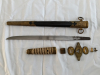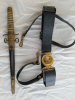 Originaler Offiziersdolch der Kaiserlich Japanischen Marine aus dem Zweiten Weltkrieg „Naval Kaigun Tanken“ M.1883 in ausgezeichnetem, neuwertigem Zustand mit originalem Offiziersschwertgürtel der japanischen Marine aus dem Zweiten Weltkrieg. Die Klinge in Hira-Zukuri-Form mit Bohi-Gravuren weist feine Kratzer auf; aus der Meiji- oder Showa-Zeit. Der Tsuka ist mit poliertem weißem Rochenleder überzogen und die Saya mit fein poliertem schwarzem Rochenleder. Die Messingbeschläge der Koshirae sind alle original, rostfrei, mit schöner Patina, in Museumsqualität. Gesamtlänge in Koshirae 40,5 cm, Länge Nagasa 21 cm, Motohaba 1,7 cm, Motogasane 0,5 cm.
