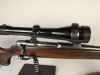 eine geführte Jagdwaffe in gebrauchtem Zustand, am Schaft sind Nutzungsspuren vorhanden