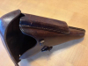 Aus meiner Sammlung: Originale Koffertasche für Pistole P.08, Hersteller: "FR.OFFERMANN BENSBERG 1939", WaA 27. stabiles festes braunes Leder (für Portepeeträger u. Luftwaffe), alle Nähte fest und in Ordnung. Als Zubehör für fortgeschrittene Sammlung! Bei Export EU-Porto beachten!