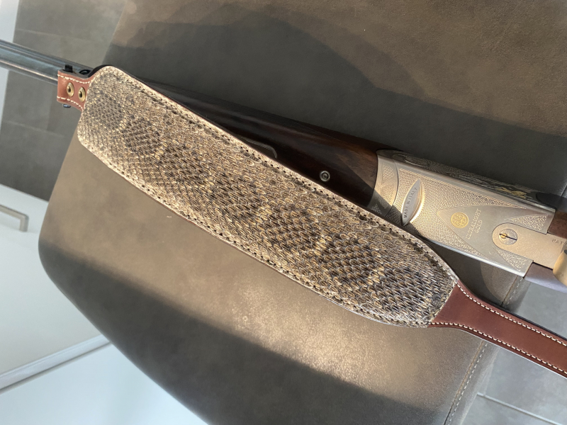 Biete hiermit meinen kaum geführten und als wie neu zu bezeichnenden Gewehrriemen an. Beständiges Leder gepaart mit klapperschlangen Leder machen ihn nicht nur zum einzigartigen Blickfang sondern auch zum hochwertigen Acessoire für die Jagd. Einmalig und Einzelstück!!