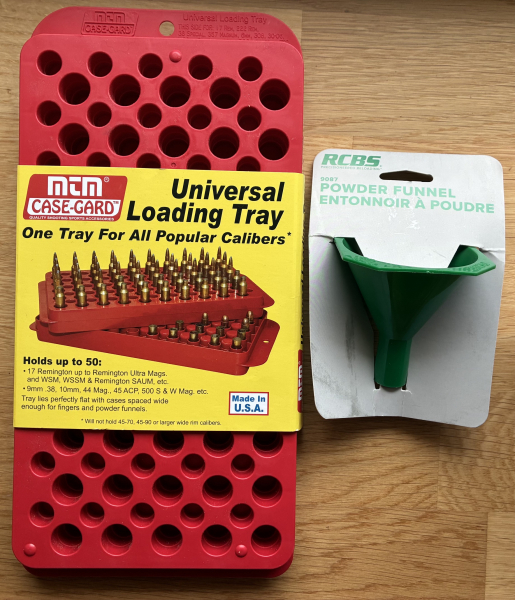 Ladebrett von MTM für viele Kaliber (Unisize) und Fülltrichter von RCBS, beides unbenutzt, wegen Überbestand abzugeben.