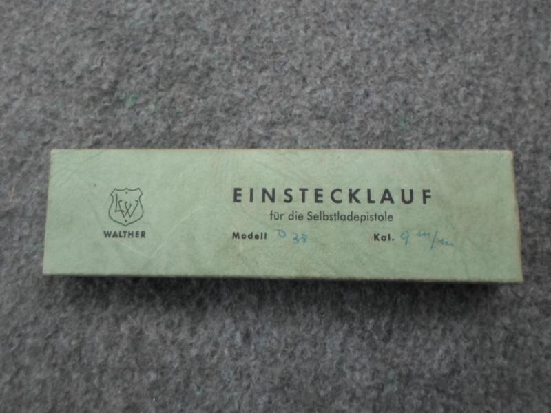 Lothar Walther Einstecklauf 4 mm M 20 für Walther P 38 Kaliber 9 mm Luger. In der OVP mit Bedienungsanleitung, 8 Reduzierpatronen und Putzstock. Für den Erwerb dieses Einstecklaufes ist ein vorhandener WBK Eintrag mit einer P 38 Pistole im Kaliber 9 mm Luger erforderlich.