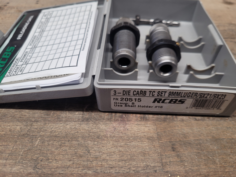 Biete RCBS Matrizen in 9x19/9mm Luger/9x21 etc... Set ist nicht vollständig, aufweit Matrize fehlt! Ausstoßerstift ist gebrochen. Es ist ein RN Setzstempel verbaut.