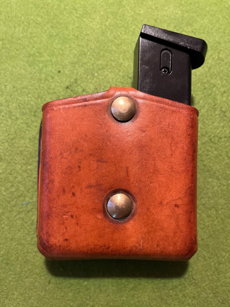 und kann ohne den Gürtel zu öffnen abgetrennt von der Hose werden. Die Abmessungen sind ersichtlich und das abgebildete Magazin, vergleichbar mit dem einer Glock 17, ist ca. 120mm. lang. Passende Holster wie z.B.dieses