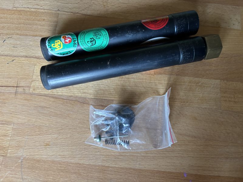 Biete hier für Steyer lp1 2 co2 Kartuschen und den Anschluss an die Waffe an . Füllstück ist auch dabei