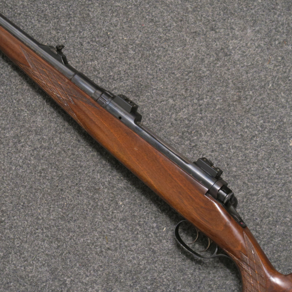 Angeboten wird eine Repetierbüchse Anschütz Mod 110 Kal. 7x64, 60cm Lauflänge, Schaflänge 36,5cm. Deutscher Stecher. Auf der Waffe sind Schwenkmontagebasen vorhanden.