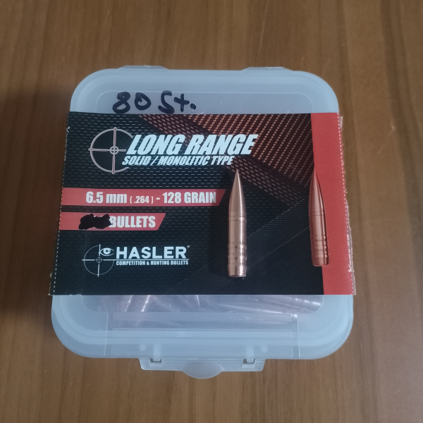 Sie bieten auf 80 Geschosse der Firma Hasler. Es handelt sich um Long Range Geschosse im Kaliber 6,5mm/.264 und sind 128 Grain schwer.