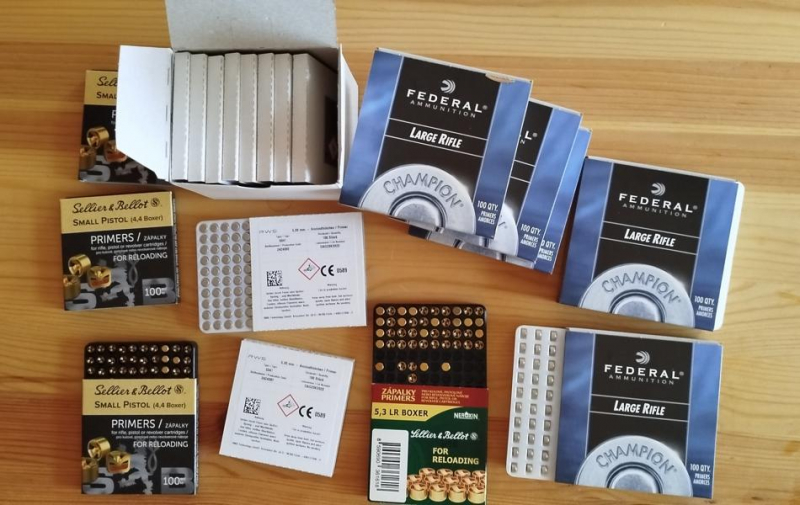 Zum Verkauf stehen folgende Zündhütchen: 925 Stck. RWS LR, 425 Stck. Federal 210, 46 Stck. S&B LR, 143 Stck. S&B Small Pistol (4,4 mm). Hinweis: Da es sich um eine Privatauktion handelt wird keine Garantie übernommen und es erfolgt weder Rücknahme noch Umtausch.