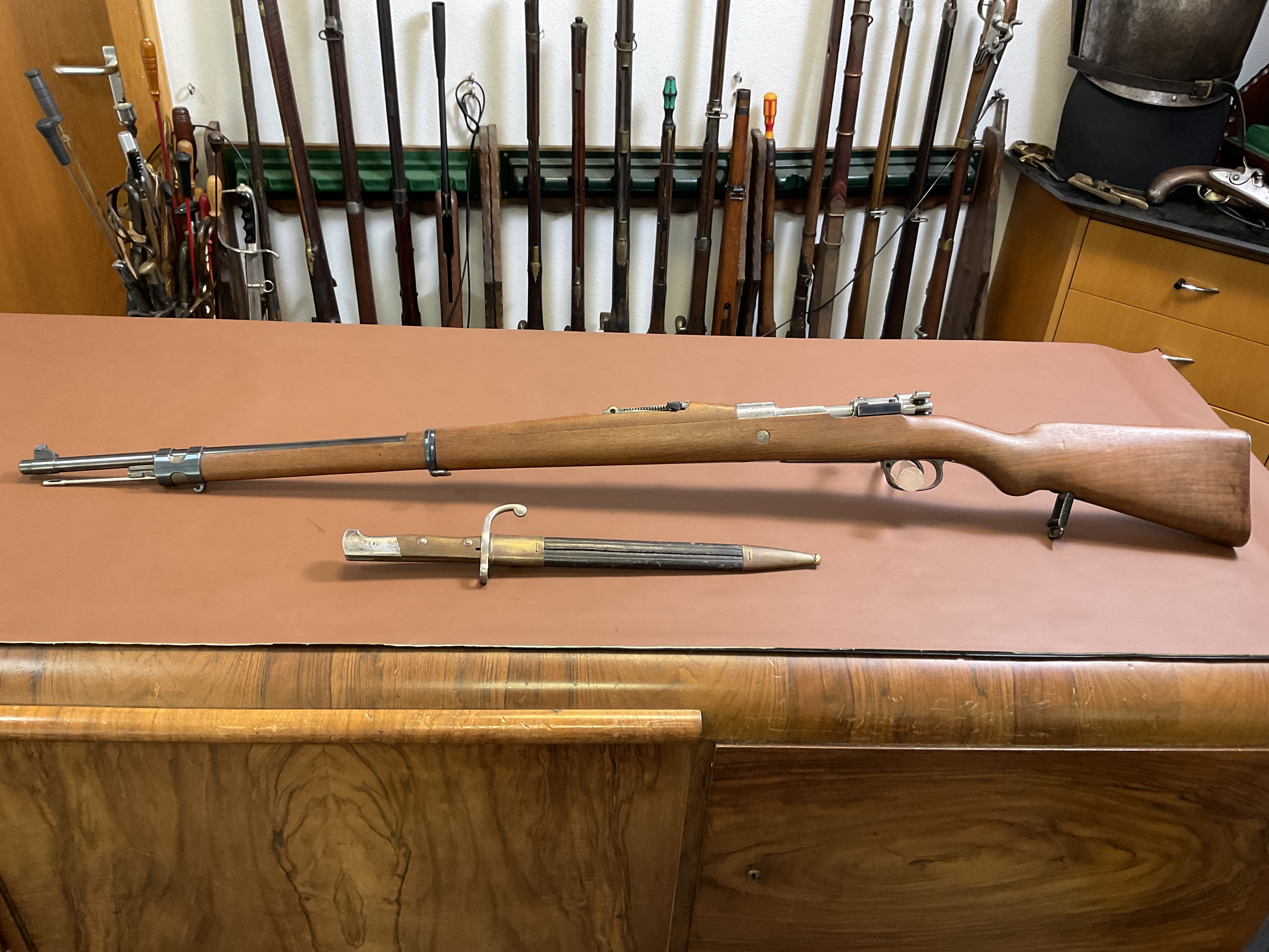 Zum Verkauf steht ein Brasilien Mauser Modell 1908, gefertigt von der Deutschen Waffen- und Munitionsfabriken (DWM) in Berlin, im Kaliber 7x57.